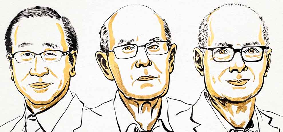 Susumu Kitagawa, Richard Robson, and Omar M. Yaghi (Illustration: Niklas Elmehed, Nobel Prize Committee)