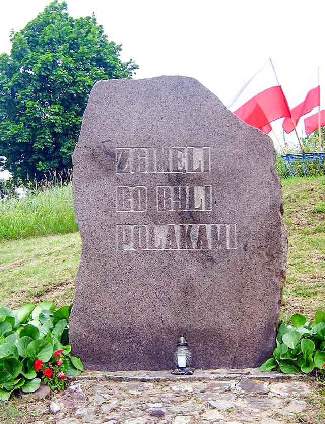 A plaque on the hill in Giby: "They died because they were Poles." (Source: Wikipedia)
