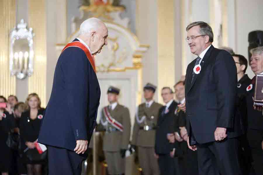 Waclaw Szybalski (po lewej) otrzymuje Krzyż Wielki Orderu Odrodzenia Polski z rąk prezydenta RP Bronisława Komorowskiego (po prawej) w 2011 r za swą “niezwykłą i nobliwą służbę” (Foto: Foundation Professor Waclaw Szybalski)